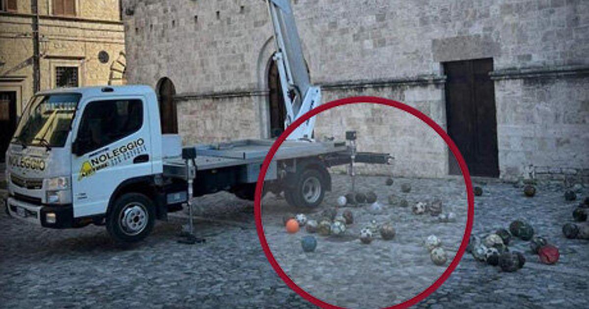 На землю спустили десятки разных мячей: одни сохранились лучше, другие – хуже, потому что часто подвергались влиянию стихии. Все они оказались на крыше из-за максимальной любви итальянских детей к футболу: раньше играли там, где придется, в том числе и на площадях.