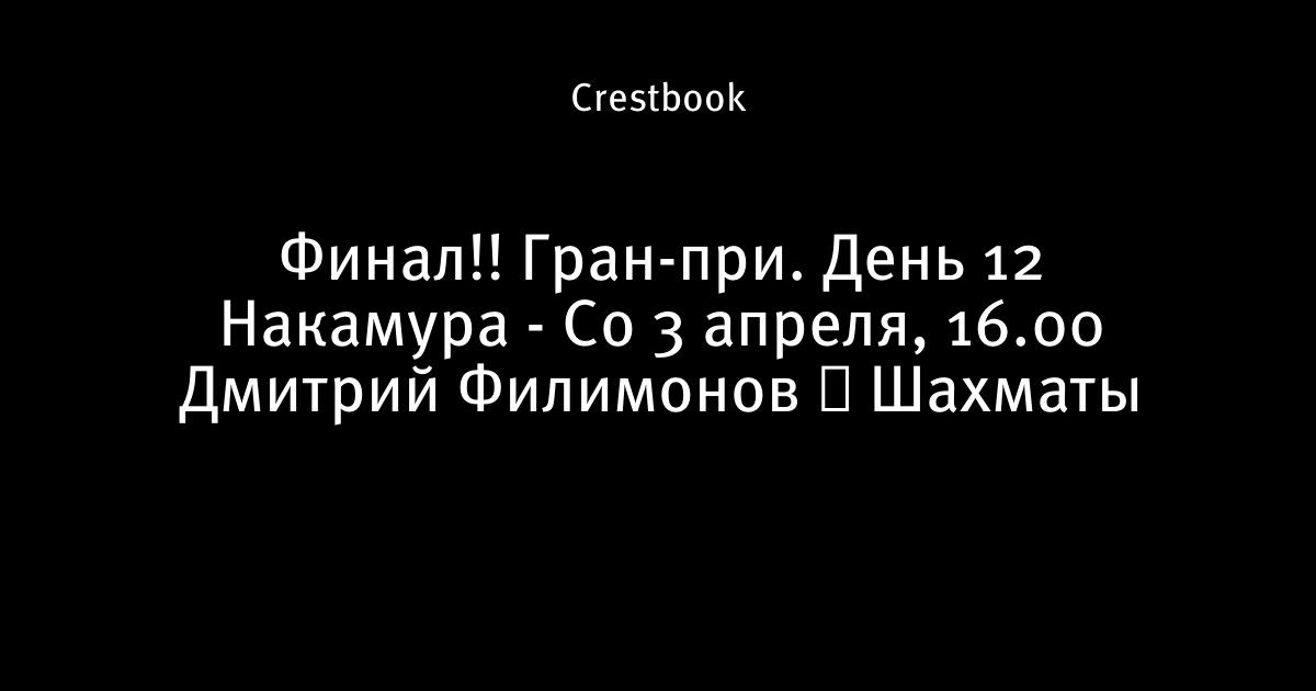 Финал!! Гран-при. День 12 👑 Накамура - Со ⏰ 3 апреля, 16.00 🎤 Дмитрий Филимонов ♕ Шахматы
