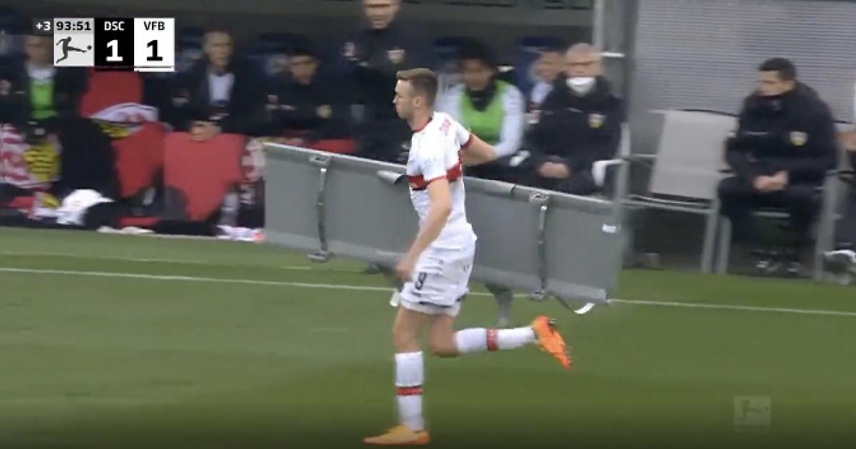 В Бундеслиге «Штутгарт» сыграл вничью с «Арминией» – 1:1. В самой концовке матча два игрока «Арминии» столкнулись головами, после чего оба рухнули на землю.