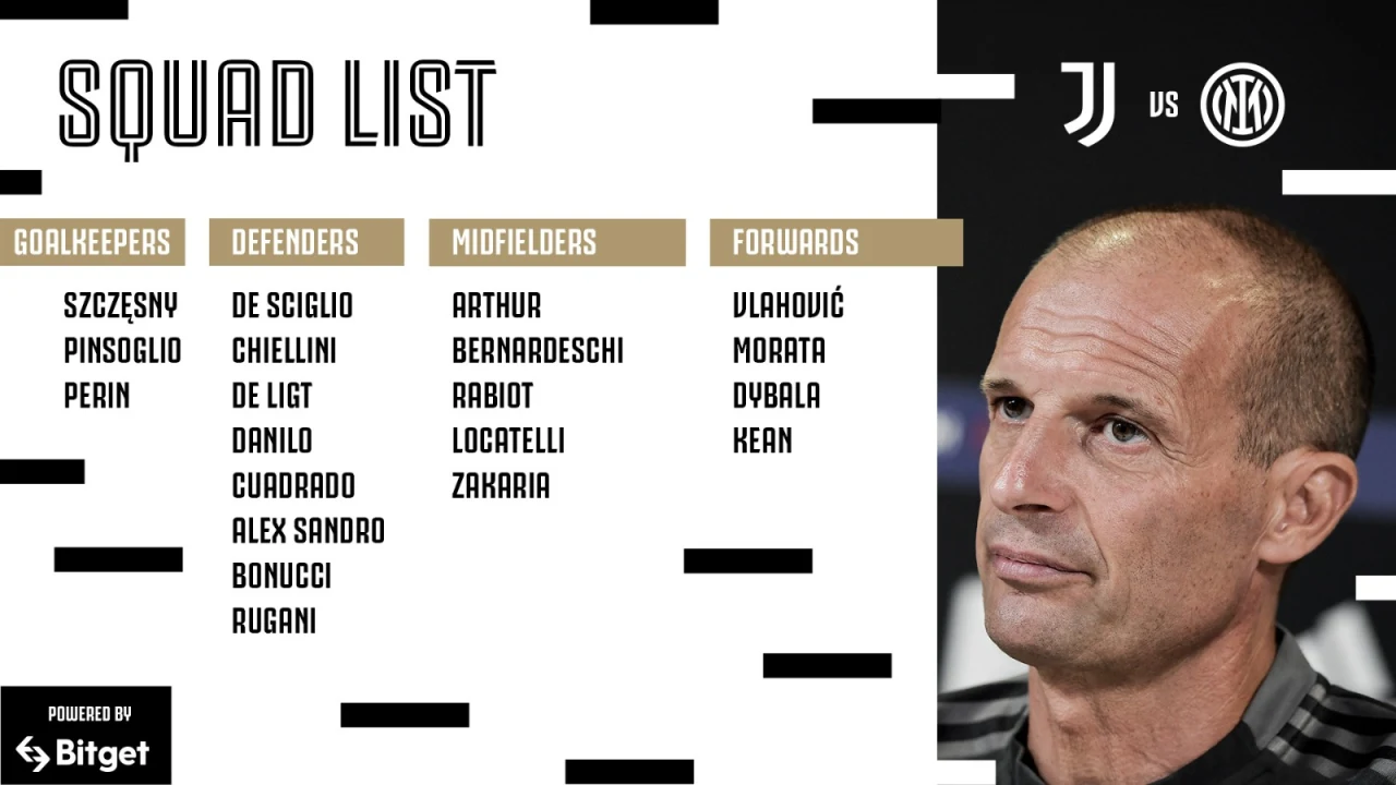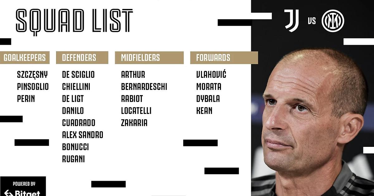 Массимилиано Аллегри включил Душана Влаховича, Дениса Закарию и Леонардо Бонуччи в свой состав на сегодняшний матч против «Интера».