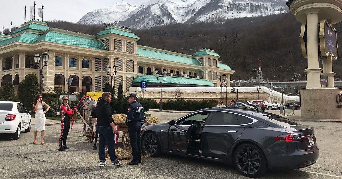 Игорная зона «Красная Поляна» призналась, что столкновение Tesla и телеги было специально запланированной акцией в рамках рекламной кампании Telegram-канала @sochi_casino.