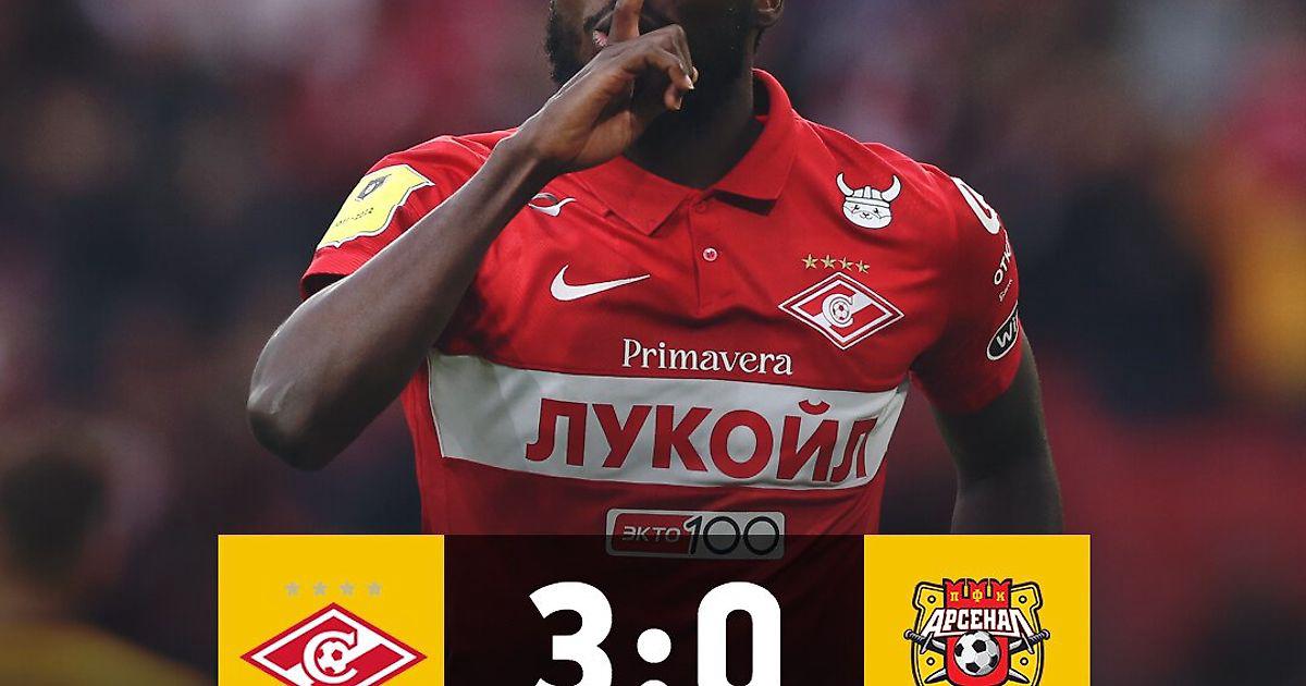 «Спартак» в домашнем матче 24-го тура Тинькофф РПЛ разгромил «Арсенал» со счетом 3:0. Встреча прошла в Москве на «Открытие Арене».
