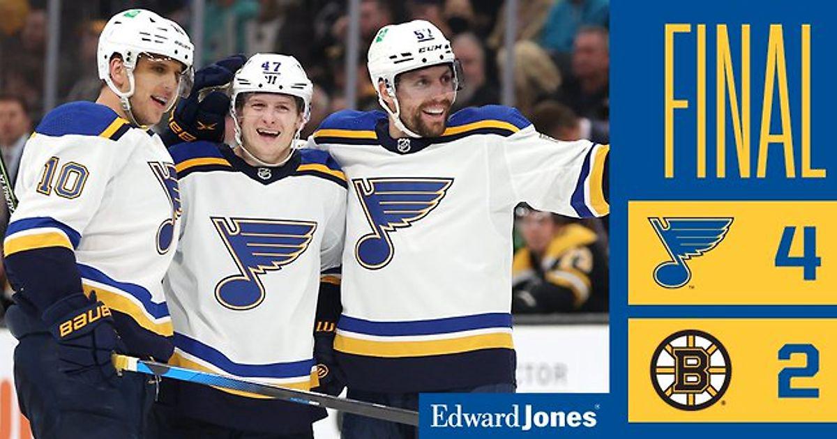 "Бостон Брюинз"-"Сент-Луис Блюз" 2:4.Владимир Тарасенко забросил 2 шайбы,Тори Круг и Давид Перрон набрали по 2 очка (1+1),Павел Бучневич отдал 2 результативные передачи,Вилле Хуссо отразил 39 бросков."Блюзмены" выиграли 6 игру подряд.