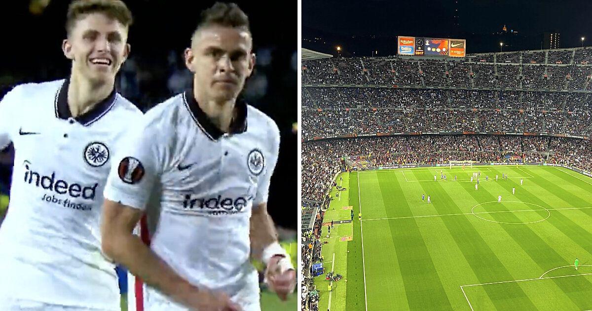 Колумбиец Рафаэль Сантос Борре из «Айнтрахта» забил безумный гол на «Камп Ноу» – вколотил мяч под перекладину с 25 метров.