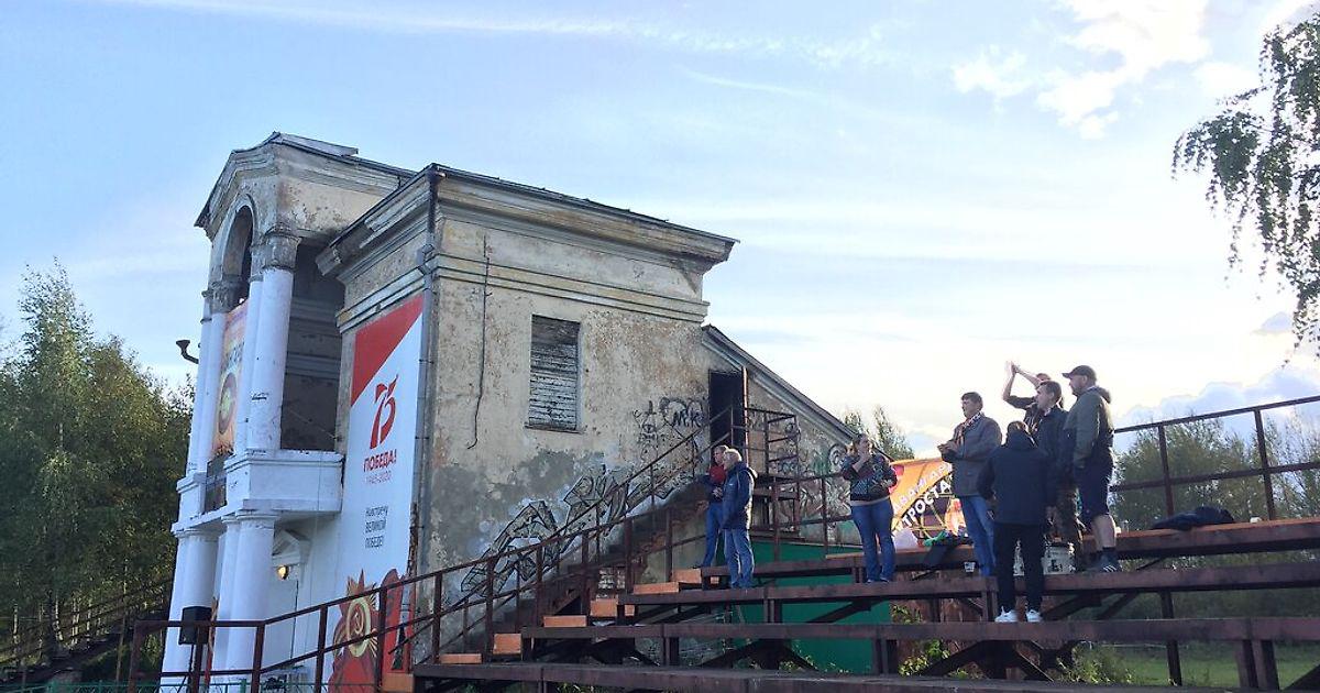 Это болельщиики на стадионе «Авангард». Силами энтузиастов и предпринимателей поле с натуральным покрытием было приведено в порядок. На полноценную реконструкцию стадиона у энтузиастов средств не нашлось.
