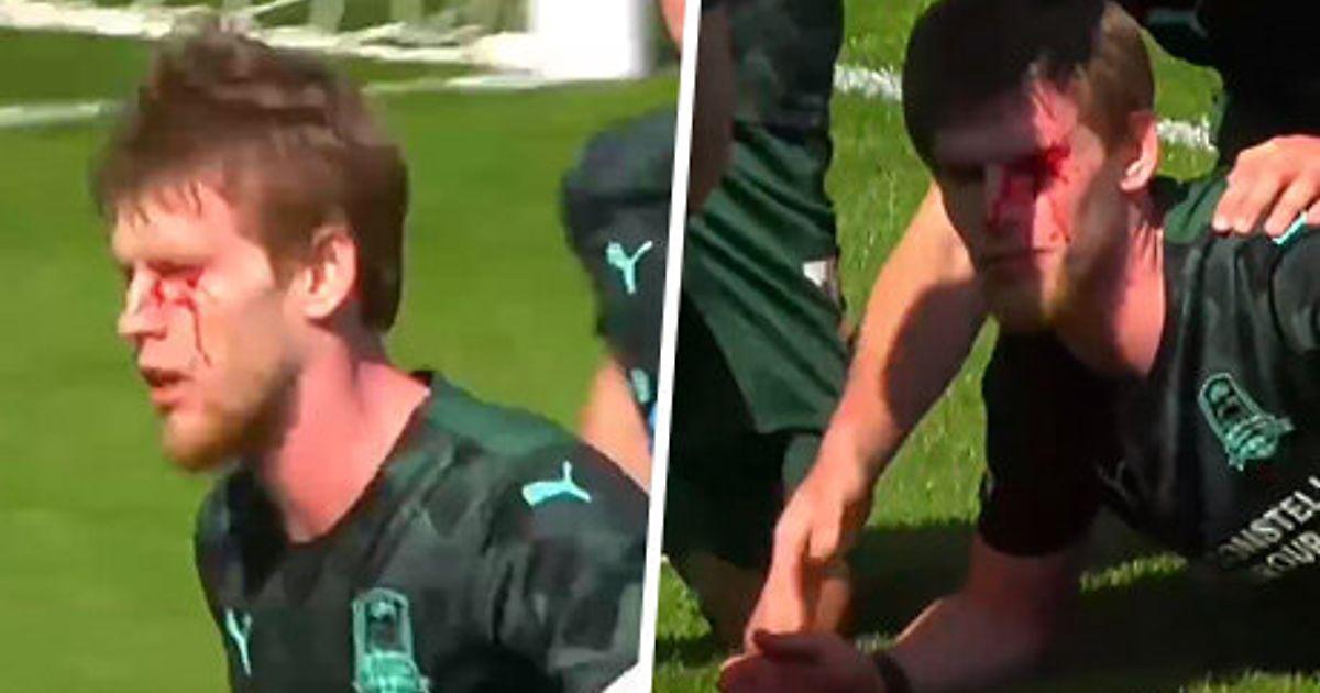 Самый кровавый гол в ФНЛ – капитан «Краснодара-2» сильно рассек лицо. Ух