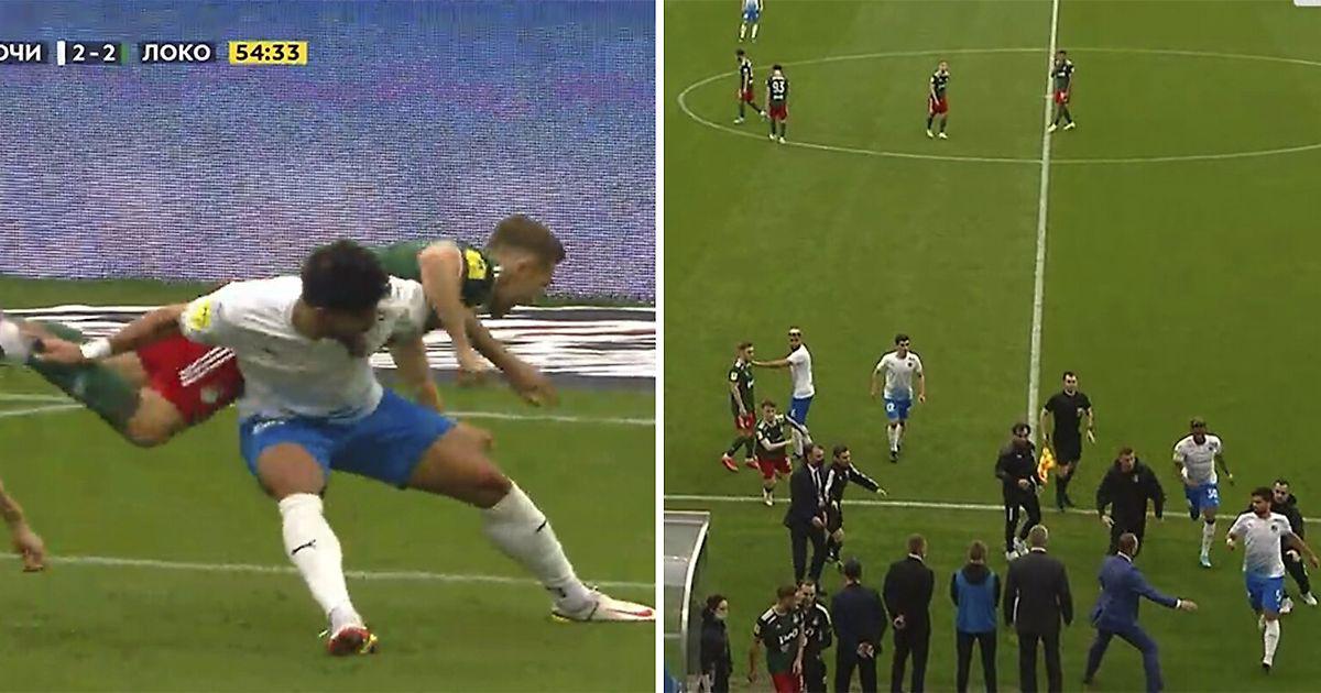 Сгусток хамства, грубости и агрессии у «Сочи» с «Локо»: коленом в больную грудь, удар ногой в ответ. Итог – два удаления и почти драка