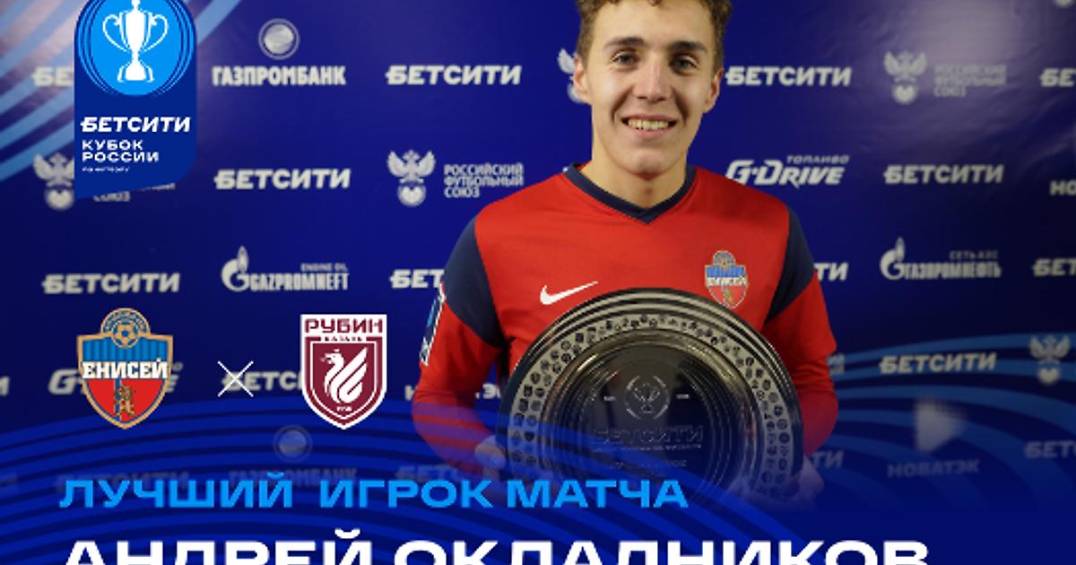 Форвард Андрей Окладников признан лучшим игроком 1/4 финала БЕТСИТИ Кубка России между «Енисеем» и «Рубином».