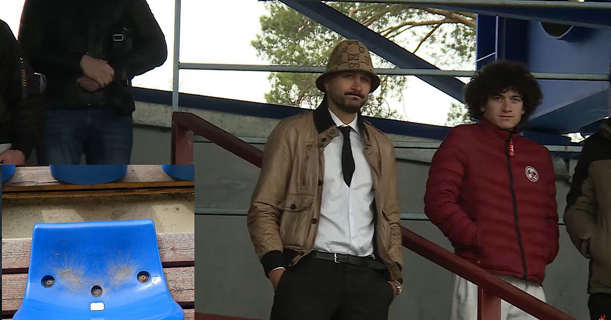 В конце первого тайма с верхних рядов спустился человек в синий куртке «Матч ТВ» (быстро ушёл, фотографии нет). На спине помимо логотипа канала были слоганы типа «Все на Матч!» и «ТВ».