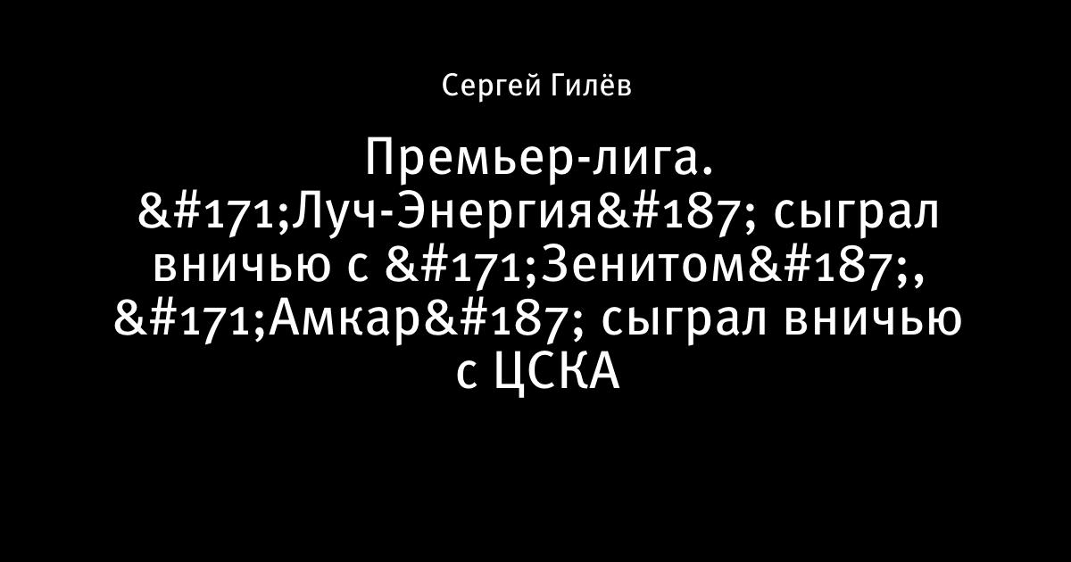 Премьер-лига. «Луч-Энергия» сыграл вничью с «Зенитом», «Амкар» сыграл вничью с ЦСКА