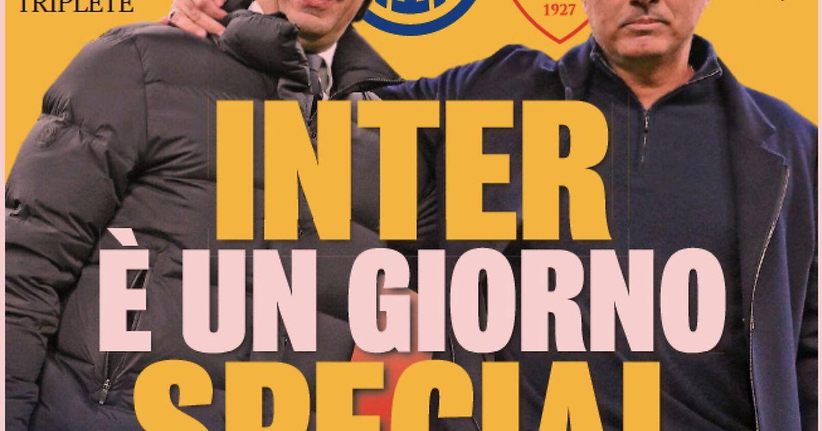 «Интер», Особенный день»: «Кого мы видим: «Сан Сиро», 18:00 (СЕТ): Индзаги сразится с Моуриньо, героем Триплеты. Если выиграют, Нерадзурри приблизятся к Скудетто. Все билеты проданы: 75 тысяч также для того, чтобы поприветствовать великого бывшего тренера, непобедимого с «Ромой» в 12 играх. Заряд от Симоне: «Для нас это как финал. Наши арбитры среди лучших в Европе».