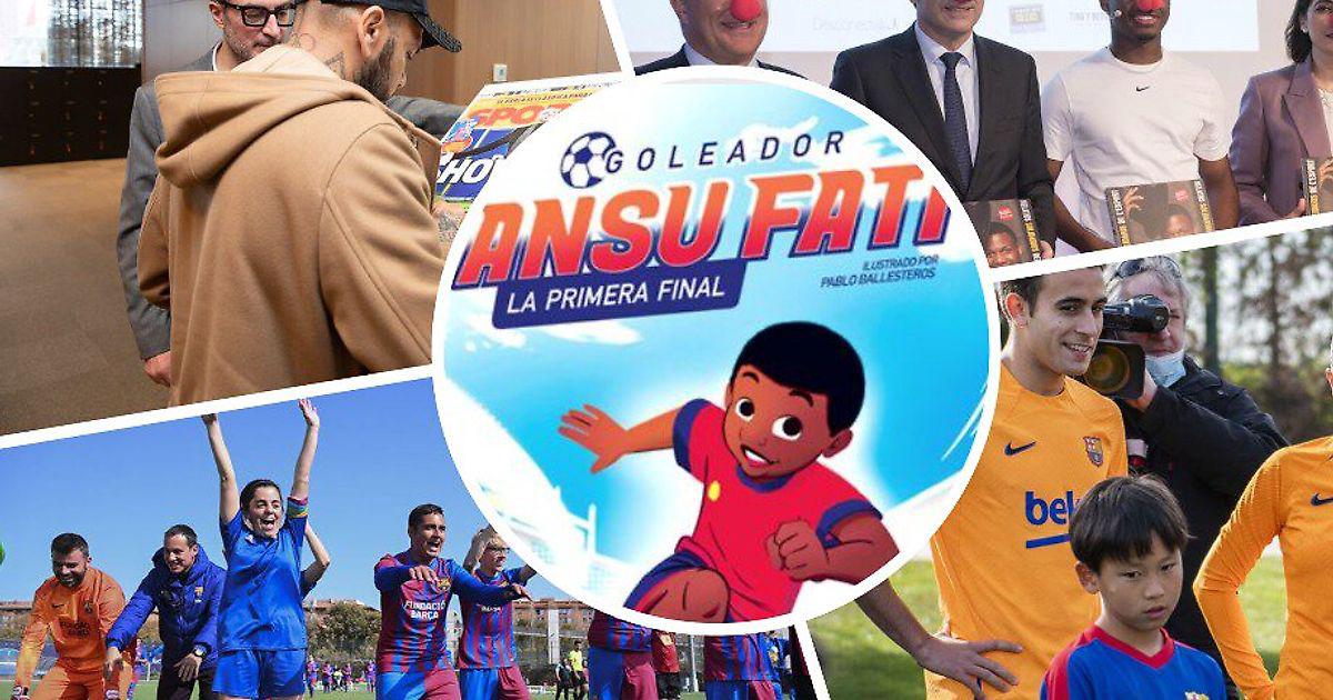 Ансу Фати на презентации книги «Истории спортивной солидарности». Он стал лицом обложки очередного выпуска серии, направленного на сбор денег для некоммерческой организации больничных комиков «Паллапупас». Когда мы ещё увидим Лапорту с красным клоунским носом?