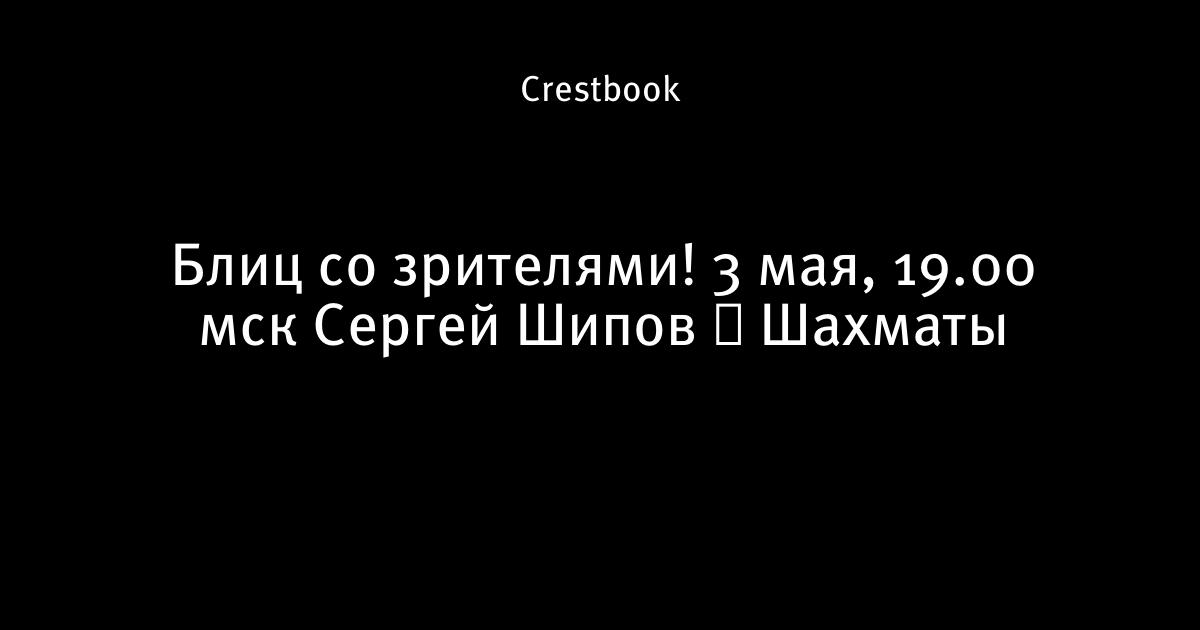 Блиц со зрителями! 👫 3 мая, 19.00 мск 🎤 Сергей Шипов ♕ Шахматы