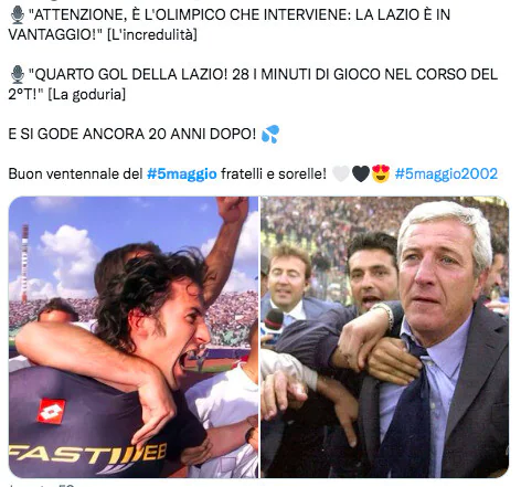 Болельщики «бьянконери», спустя 20 лет, отмечают в Twitter дерзкую победу в чемпионате над «Интером».