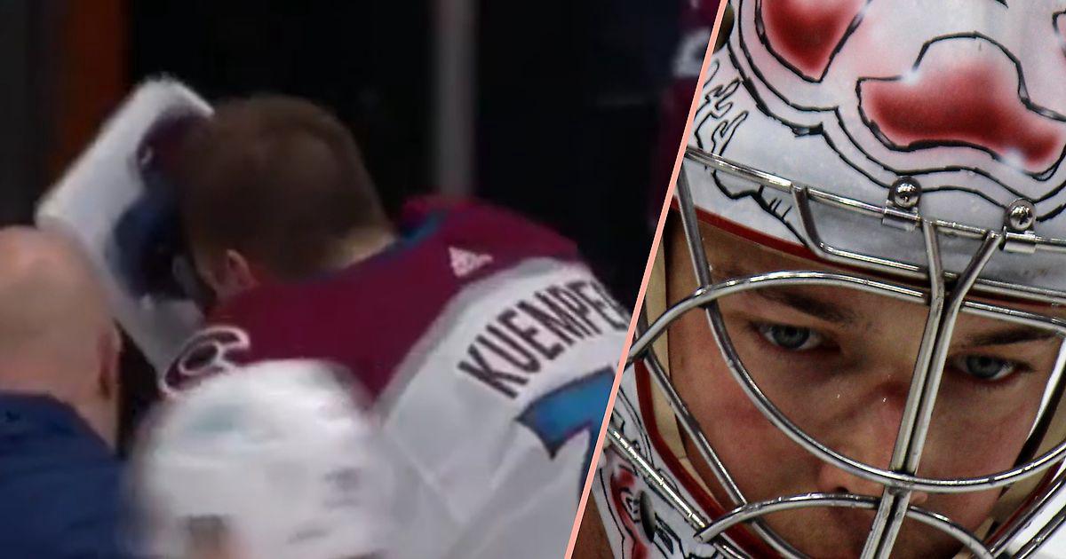 Концовка первого периода третьей игры Колорадо и Нэшвила была омрачена жуткой травмой вратаря Колорадо Дарси Кэмпера. Клюшка Райана Джохансена проходит сквозь маску и попадает в глаз вратарю