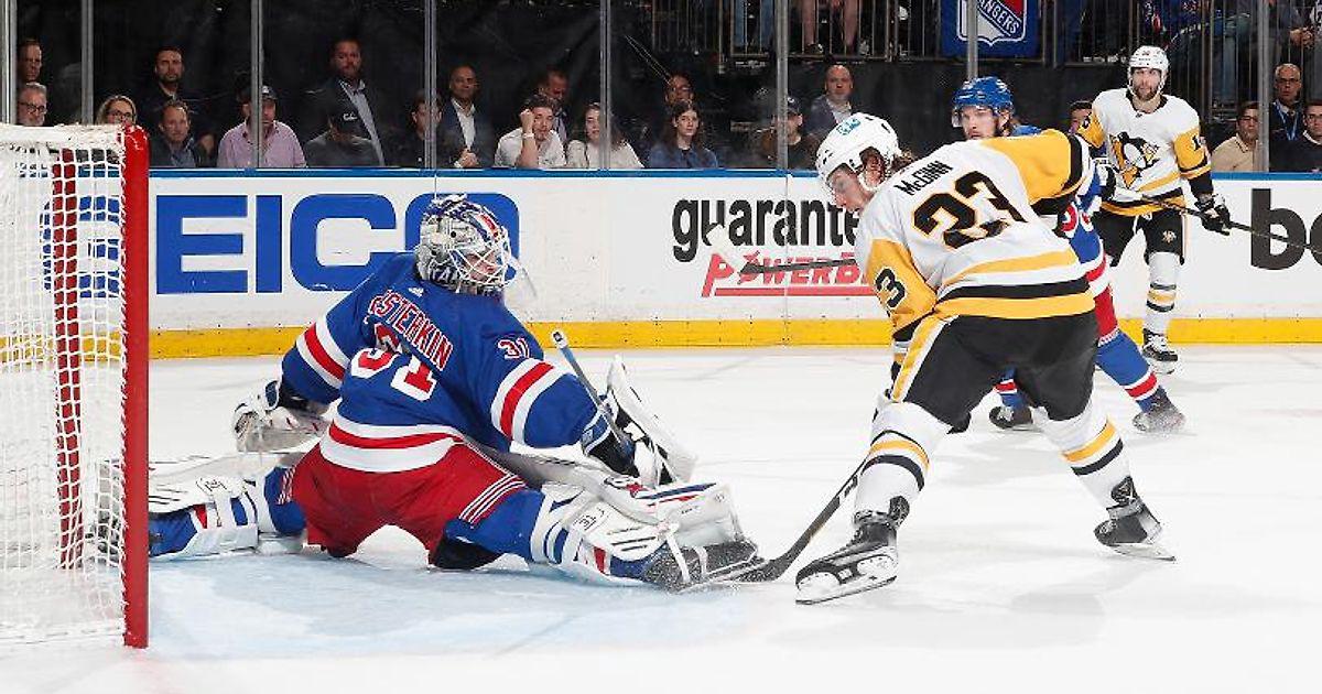 "Нью-Йорк Рейнджерс"-"Питтсбург Пингвинз" 5:3.Алекс Лафреньер и Джейкоб Труба набрали по 2 очка (1+1),Артемий Панарин отдал результативную передачу,Игорь Шестёркин отразил 29 бросков.У гостей Джейк Гюнтцель забросил 2 шабы,Евгений Малкин отдал результативную передачу."Рейнджеры" сократили разницу в серии до 2-3.