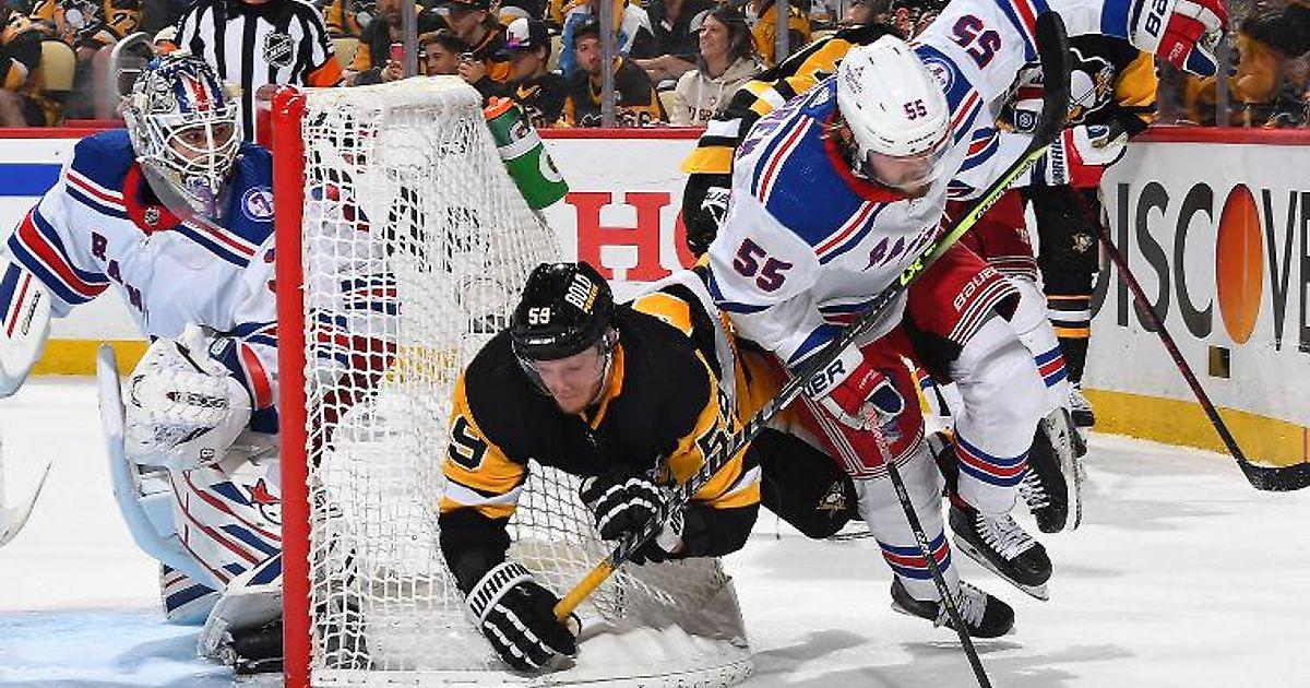 "Питтсбург Пингвинз"-"Нью-Йорк Рейнджерс" 3:5.Мика Зибанежад набрал 4 очка (2+2),Адам Фокс отдал 4 результативные передачи,Крис Крайдер забросил 2 шайбы,Игорь Шестёркин отразил 31 бросок.У хозяев Евгений Малкин забросил одну шайбу."Рейнджеры" сравняли счёт в серии 3-3.