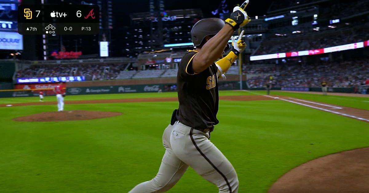 В 7 иннинге Ха Сеонг Ким своим хоум-раном (4) отправил Эрика Хосмера и Уила Майерса,выведя гостей вперёд.