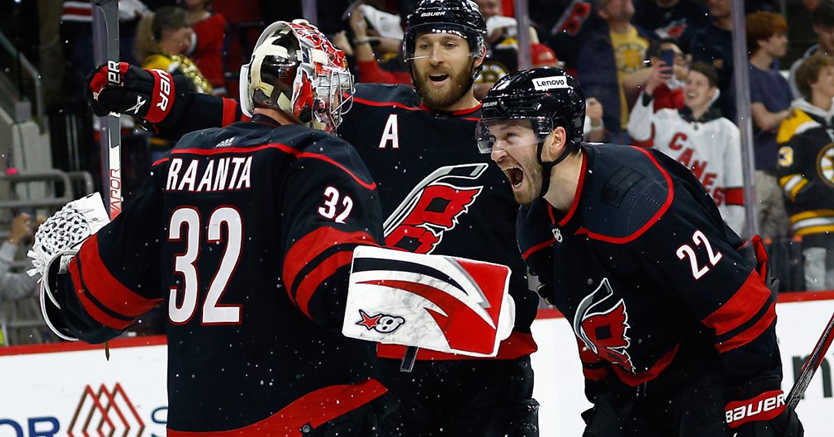 "Каролина Харрикейнз"-"Бостон Брюинз" 3:2.Макс Доми набрал 3 очка (2+1),Тойво Теревайнен набрал 2 очка (1+1),Джейккоб Славин отдал 2 результативные передачи,Антти Раанта отразил 27 бросков.У гостей Чарли МакЭвой отдал 2 результативные передачи."Ураганы" выиграли серию 4-3.