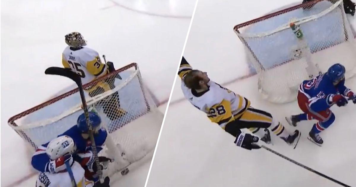 Кажется, «Рейнджерс» сравняли счет в решающем матче с нарушением: Лафреньер просто стянул шлем с игрока «Питтсбурга»