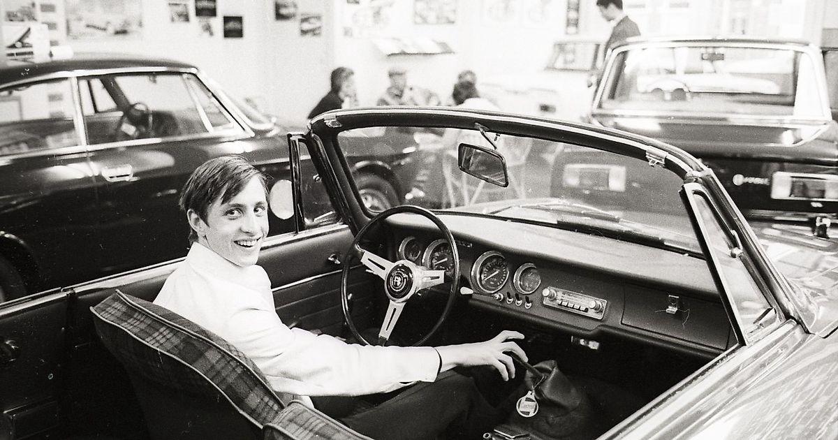 Любовь к автомобилям прослеживалась с самого начала карьеры Кройфа в Аяксе. На фото 21-летний Йохан выбирает новенькую Alfa Romeo.