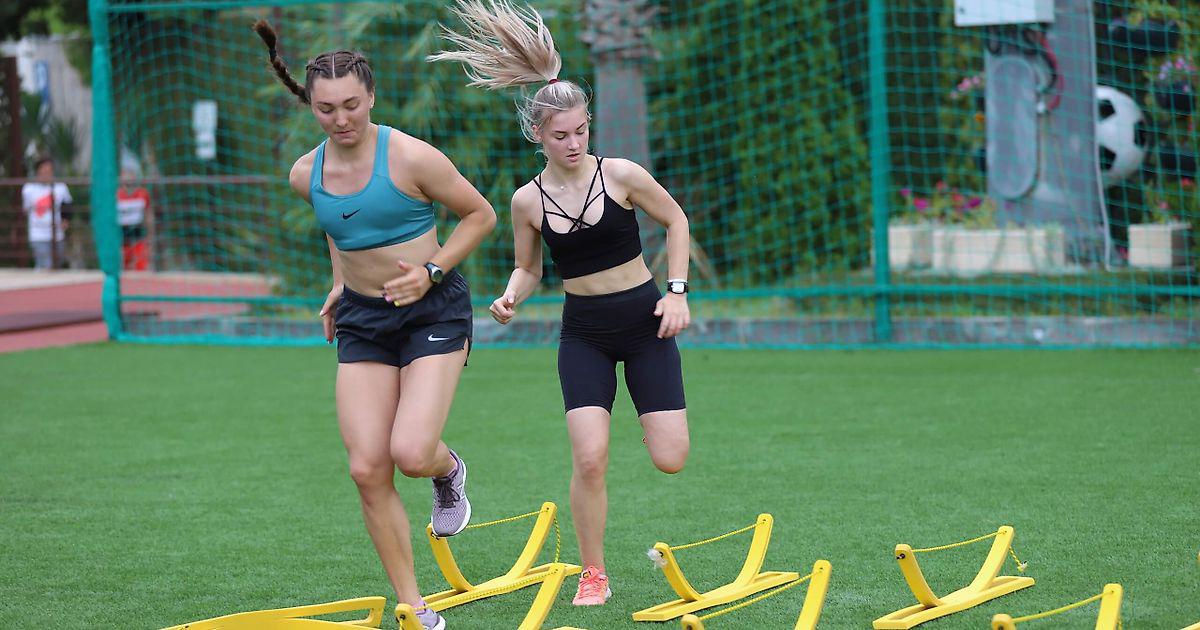 (На фото российских горнолыжницы Анастасия Горностаева и Ярослава Попова на сборе по общей физической подготовке в 2021 г.)