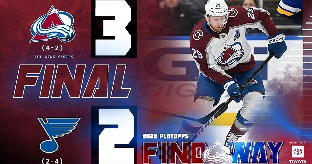 "Сент-Луис Блюз"-"Колорадо Эвеланш" 2:3.Даррен Хелм в конце матча забросил победную шайбу.Джей-Ти Комфер забросил 2 шайбы,Дарси Кемпер отразил 18 бросков."Лавины" выиграли серию 4-2.
