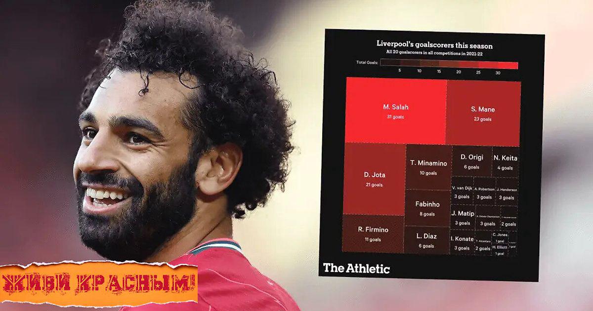 Обычные подозреваемые в нападении «Ливерпуля» лидируют, но Клоппа может воодушевить вклад Диогу Жоты и подписанный в январе Луис Диас, на счету которых 21 и 6 голов, соответственно. Традиционная тройка «Ливерпуля» нынче превратилась в коллективную пятерку «Ливерпуля».