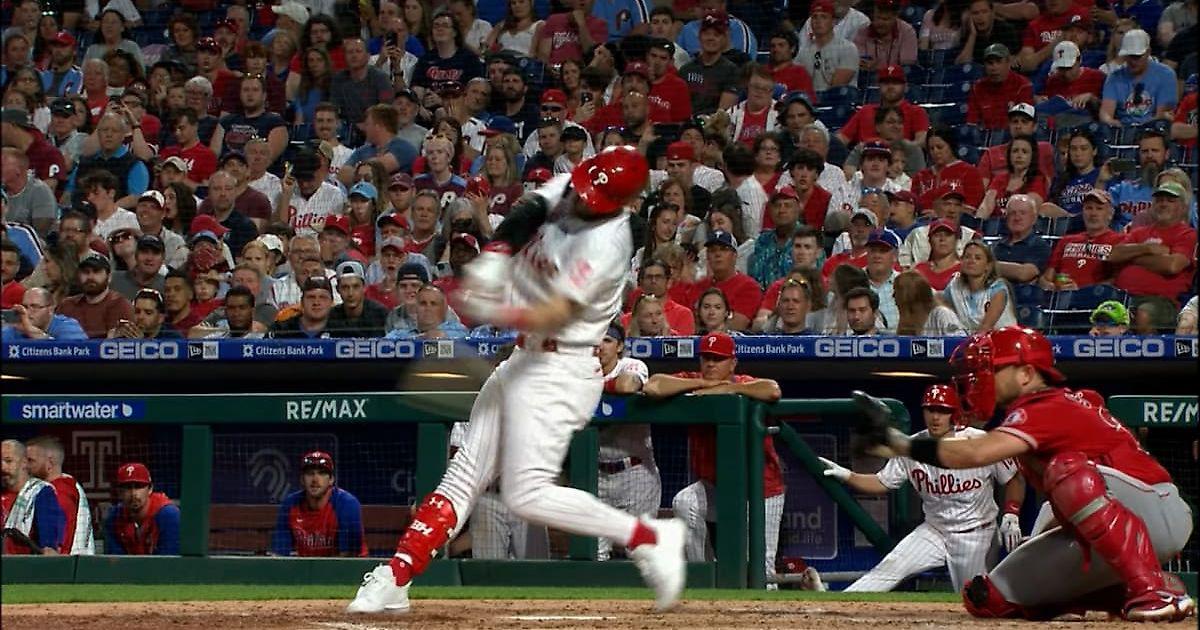 В 5 иннинге Брайс Харпер своим хоум-раном (11) отправил Кайла Шварбера и Риса Хоскинса в дом.Затем Ник Матон выбил трипл (1) и Джей-Ти Реалмуто прибежал в дом.