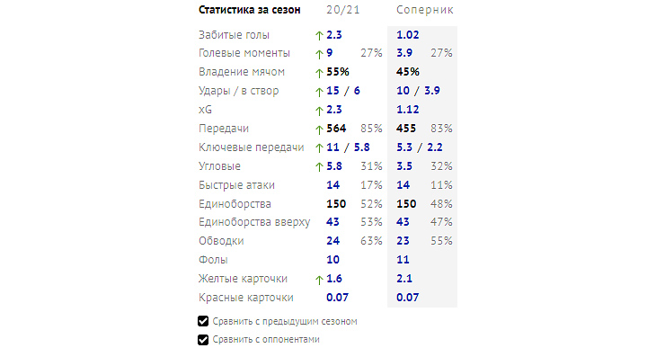 ▶ Командная статистика (в среднем за матч)