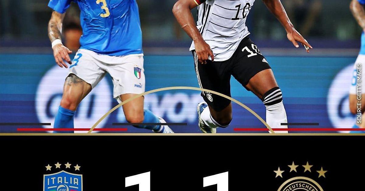 Италия — Германия — 1:1 Голы: 1:0 — Пеллегрини (70). 1:1 — Киммих (73). Составы: Италия: Доннарумма, Бираги, Флоренци, Ачерби, Бастони, Тонали, Кристанте, Фраттези, Скамакка, Пеллегрини, Политано. Германия: Нойер, Рюдигер, Керер, Зюле, Хенрихс, Киммих, Горецка, Гнабри, Мюллер, Сане, Вернер.