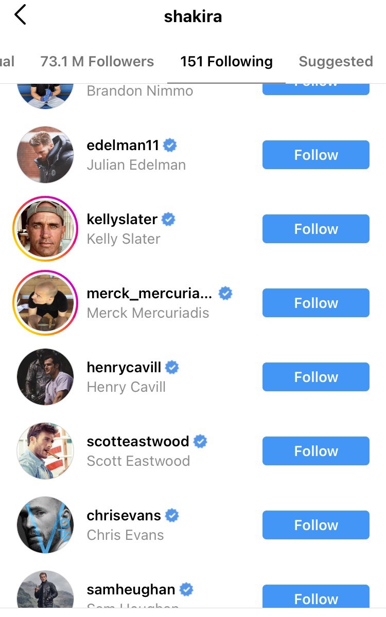 Еще одна суперзвезда, на которую подписалась колумбийка – Крис Эванс, исполнитель роли Капитана Америка. Он в ответ тоже подписался на певицу.