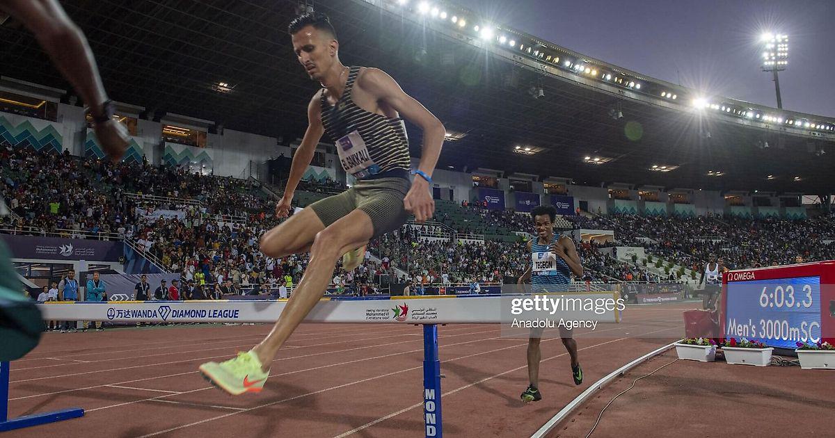 На фото: Суфиан Эль-Баккали из Марокко участвует в мужской гонке на 3000 м с барьерами во время Бриллиантовой лиги в спортивном комплексе Мулай Абделла в Рабате, Марокко, 5 июня 2022 года.