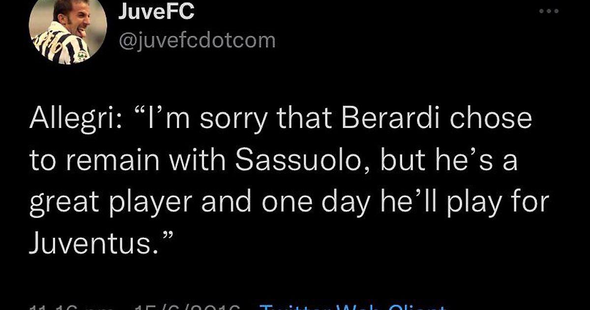 Аллегри: «Мне жаль, что Берарди решил остаться в «Сассуоло», но он великий игрок, и однажды он будет играть за «Ювентус».