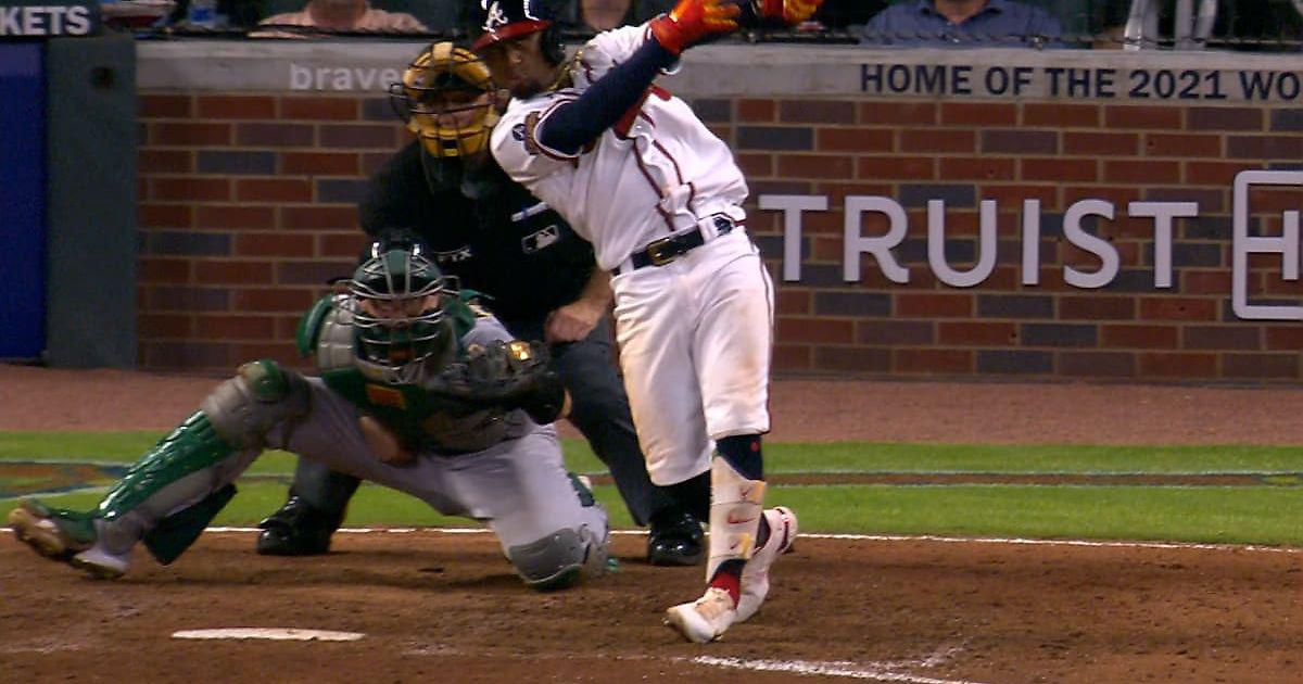 В 7 иннинге Остин Райли выбил сингл и Майкл Харрис прибежал в дом.Затем Мэтт Олсон выбил сингл и Рональд Акунья прибежал в дом.Далее Оззи Албис своим хоум-раном (7) отправил Остиан Райли и Мэтта Олсона в дом.После этого Адам Дюваль своим хоум-раном (4) отправил Марселя Озуну в дом.