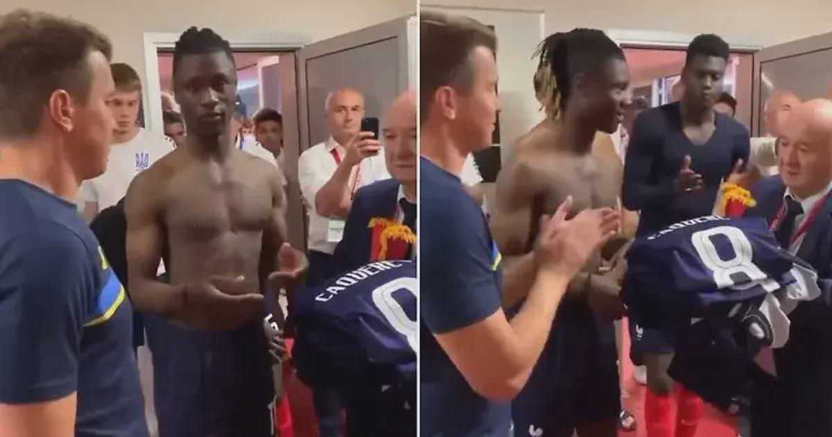 Камавинга пришел в раздевалку сборной Украины после матча. Француз поддержал игроков и подарил футболки своей команды
