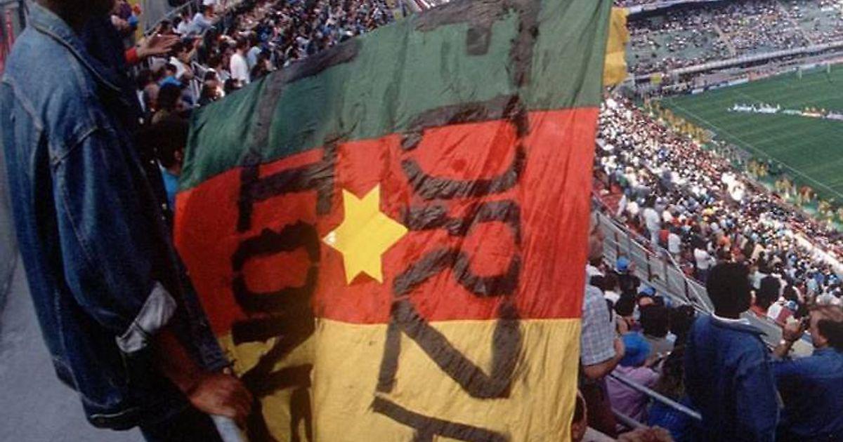 Фанат сборной Камеруна на матче против сборной Аргентины. Чемпионат Мира 1990 года