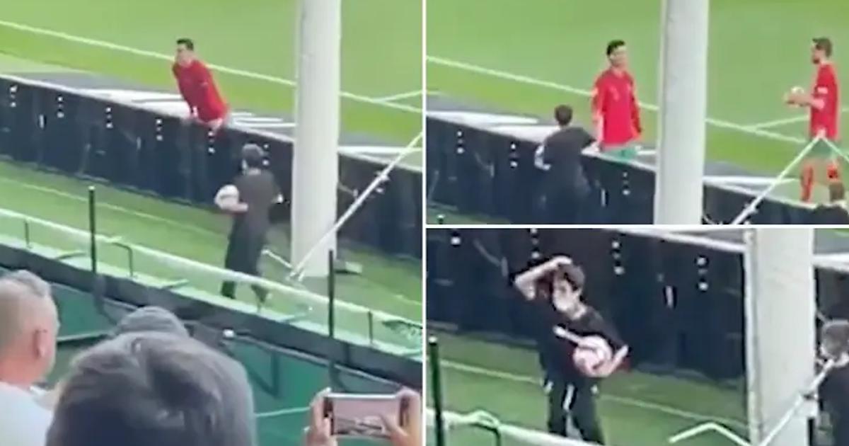 Роналду дал пять болбою во время матча Португалии. Парень и сам не поверил, что такое возможно