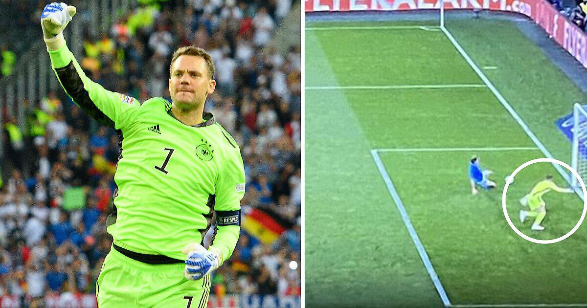 Сборная Германии разгромила Италию 5:2 в матче Лиги наций, но одним из самых обсуждаемых моментов все равно стал сэйв Мануэля Нойера. Да, это действительно шедевр.