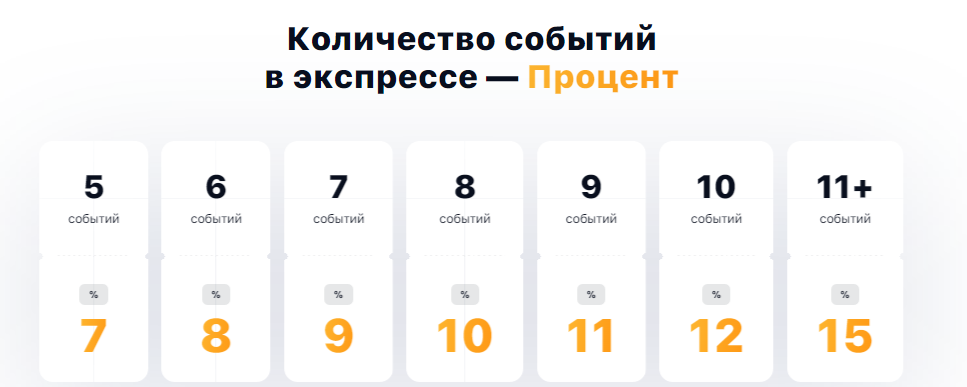 Как работает бонус на экспресс? Когда клиент заключает пари из 5 и более событий, в случае выигрыша пари он получит от 7% на основной счет от суммы выигрыша. Максимум игрок сможет забрать до 15% от победной суммы при создании удачного экспресса из 11+ матчей.