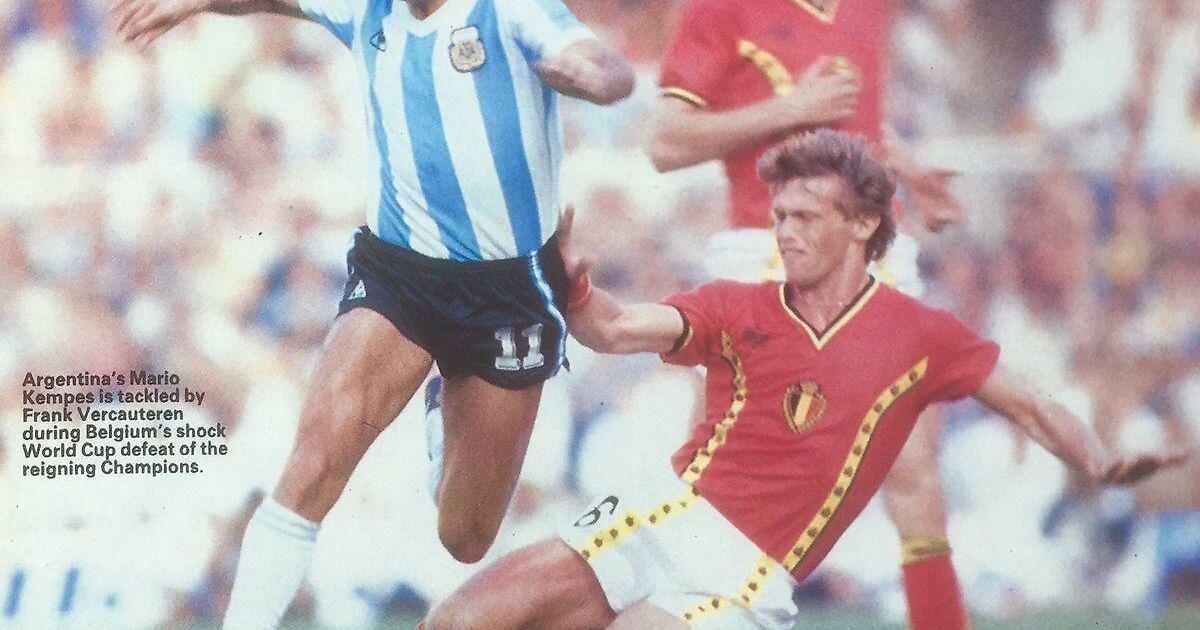 40 лет назад открылся ЧМ-1982 в Испании. И Грянул Бой!.. Стартовый Матч: Аргентина - Бельгия, сразу же задал Высокую Игровую Ноту и тот Тон яркой, драматичной борьбы, весьма высокого класса и внутреннего Содержания - которыми отличались большинство матчей турнира... На Фото: Лучший Игрок ЧМ-78 Марио КЕМПЕС сразу попал под бдительное внимание бельгийцев. На снимке, его цепко и самоотверженно (в подкате) преследует полузащитник бельгийцев - Франк ВЕРКАУТЕРЕН...