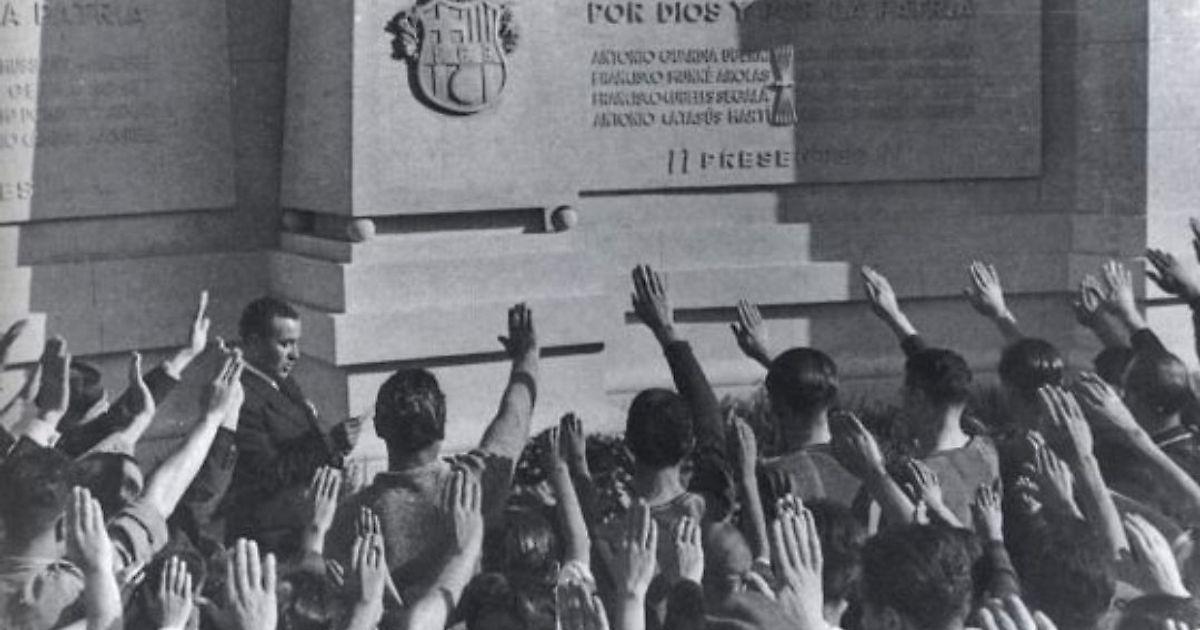 1939 год. Конец гражданской войны в Испании, приход к власти режима Франсиско Франко. В том же году у входа на тогдашний стадион «Барсы», «Лес Кортс», устанавливают мемориал павшим в гражданской войне. По окончании каждого сезона игроки и сосьос команды подходили к этому. месту для исполнения, как это называют в Испании, el saludo franquista. Франкистское приветствие.