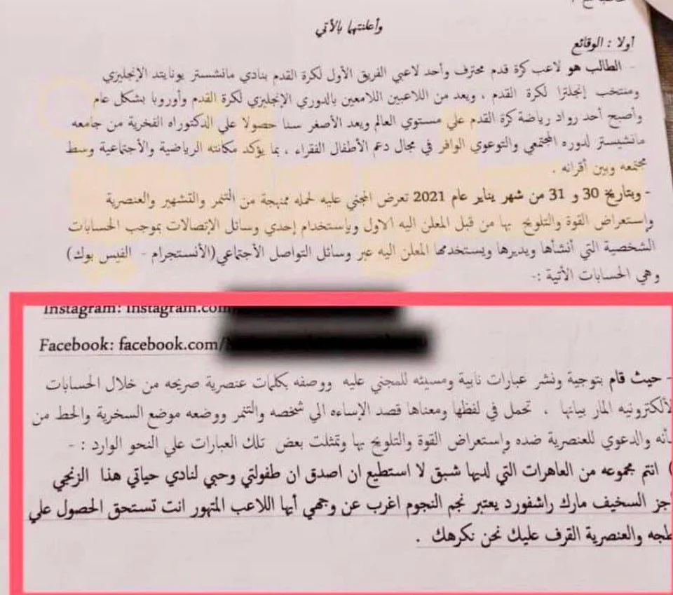 На реддите появилась распечатка сообщения, которое предположительно написал болельщик из Египта – после этого Маркус Рэшфорд подал на фаната в суд.
