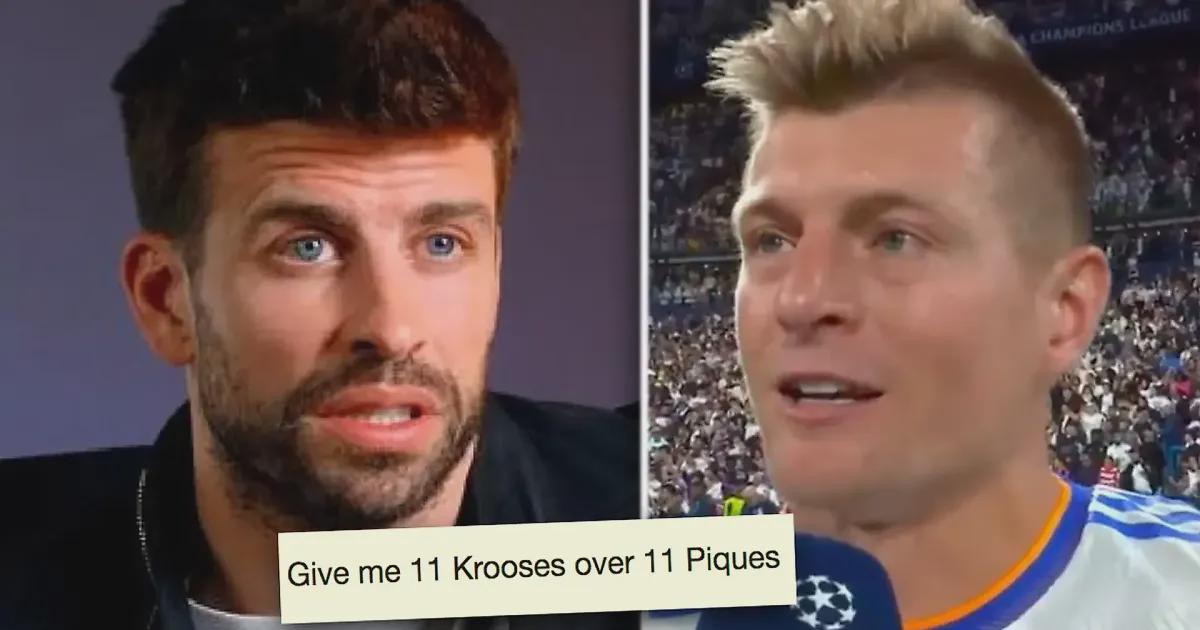 «С одной стороны, у нас есть Тони Кроос, который ведет себя джентльменом по отношению к своему клубу; с другой стороны, у нас есть Пике, который в оставшиеся годы по контракту может заработать 80 миллионов евро в родном клубе, который находится на грани финансового краха».