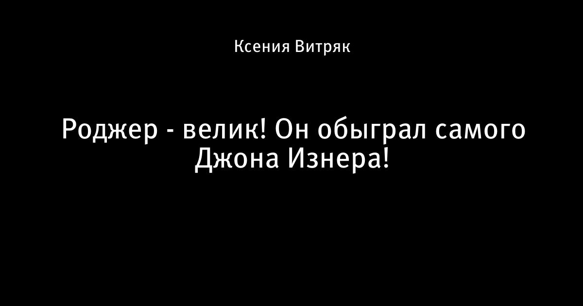 19 марта 2012, 02:29 Роджер - велик! Он обыграл самого Джона Изнера! Автор Ксения Витряк Этот пост опубликован в блоге на Трибуне Sports.ru. Присоединяйтесь к крупнейшему сообществу спортивных болельщиков! Другие посты блога Глаз Народа