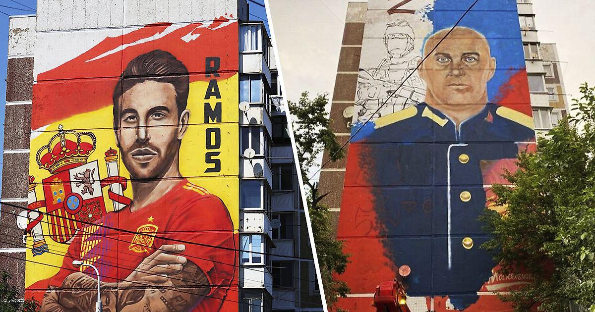 В Краснодаре стрит-арт проявился щегольским взглядом капитана «Фурии Роха». Серхио Рамос с благодарностью отметил этот мурал, разлетевшийся на фотографиях по всему миру.