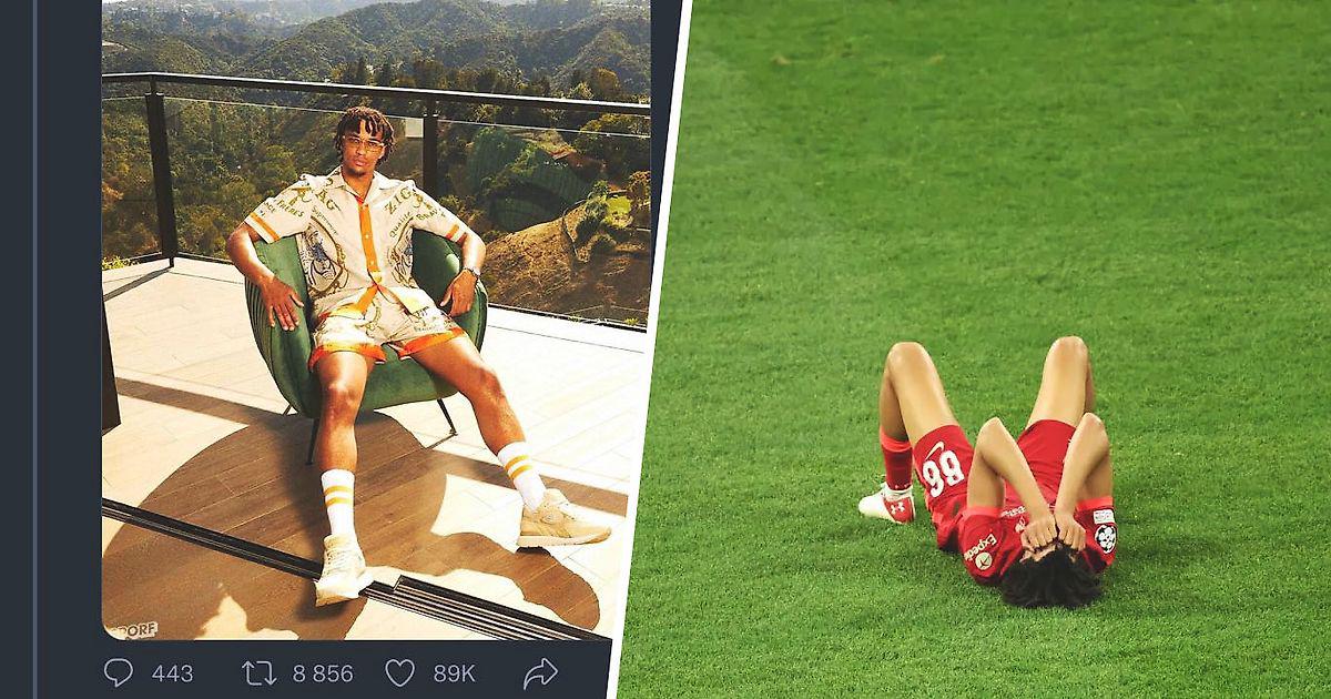 Аккаунт SPORF залил фотку к себе с подписью: «Трент сидит с правыми защитниками, лучше, чем он». Базовая шутка, админу было лень думать.