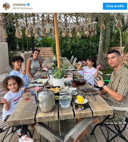 Ранее в этом месяце Криштиану поделился снимками, на которых греется на солнышке за большим семейным ужином. А Джорджина опубликовала целых шесть фото, поделившись некоторыми трогательными моментами со своими детьми.