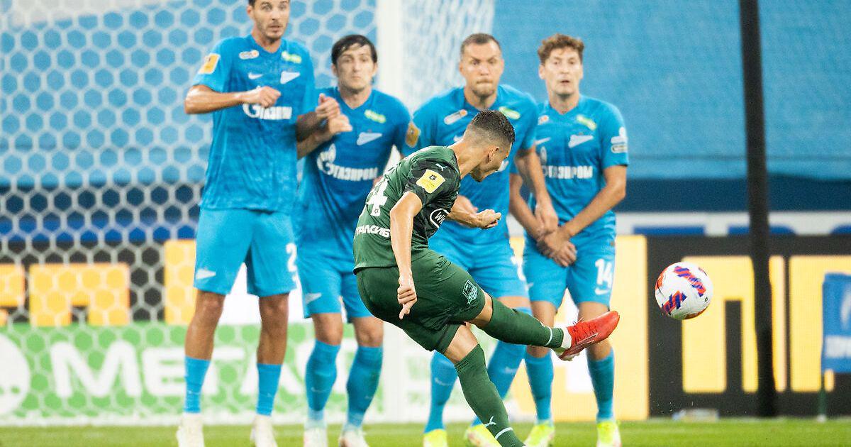Напор "Краснодара" держался как прежде, но вот уже третий выход из обороны через длинный пас, в концовке первого тайма, оборачивается очередным голом Зенита, а автором стал Ерохин.