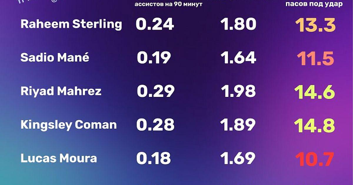 Цель инфографики — выяснить, насколько опасны для соперника ключевые передачи Рахима, как много угрозы они несут чужим воротам.